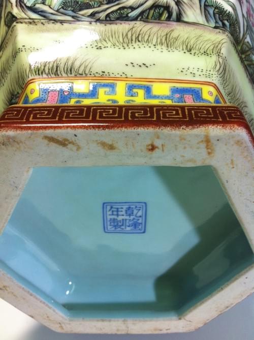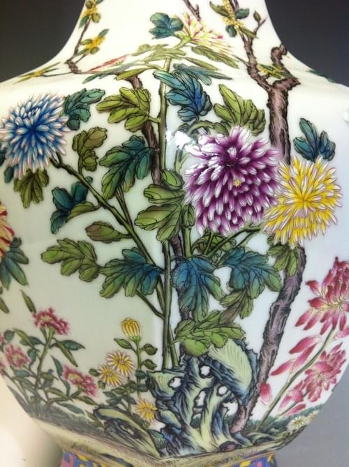 清乾隆 琺瑯彩花卉紋六方瓶 (落款:大清乾隆年製)