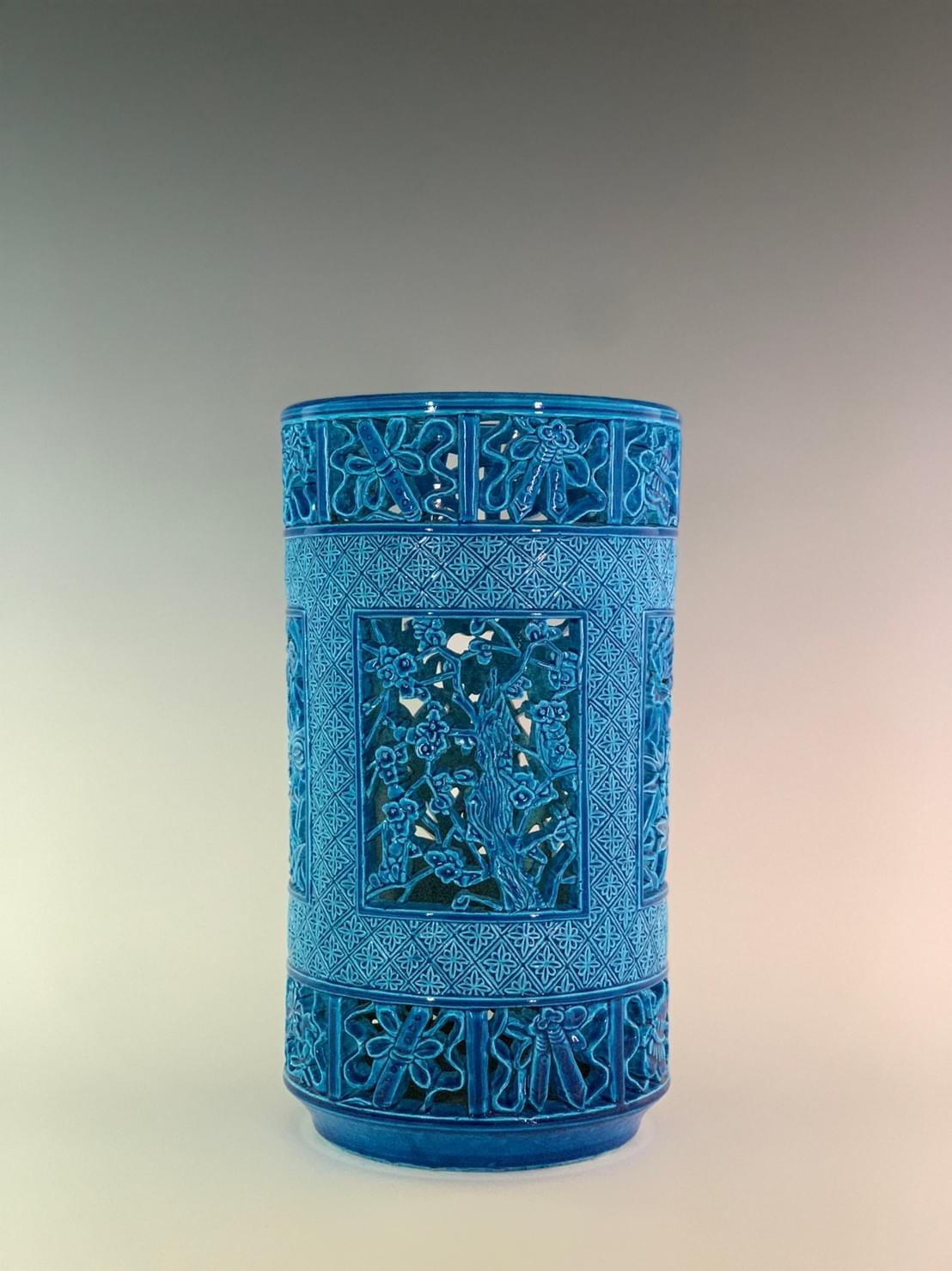 筆筒主體部分為梅、蓮、菊等四種花卉,纏枝蓮紋本身極具線條之美,以青色為蓮,取諧音“清廉”,又以纏枝為紋,自然是希望百代連綿,梅菊也有傲霜君子之稱,意境深遠,格調高雅。