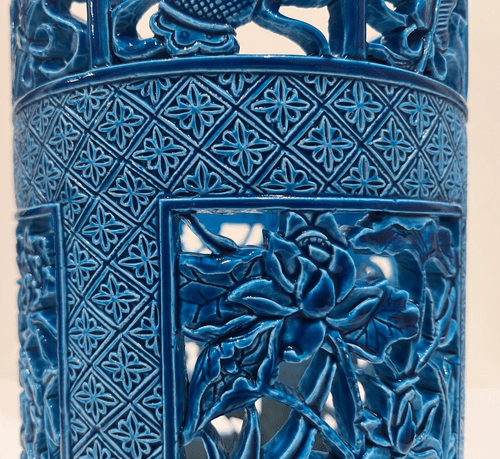 清乾隆 藍釉鏤空花卉紋筆筒 (落款:大清乾隆年製)