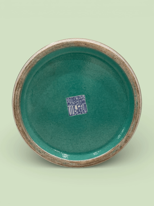 瓶內及圈足內施松石綠釉,外底中心署青花篆書【 大清乾隆年製】六字三行款。