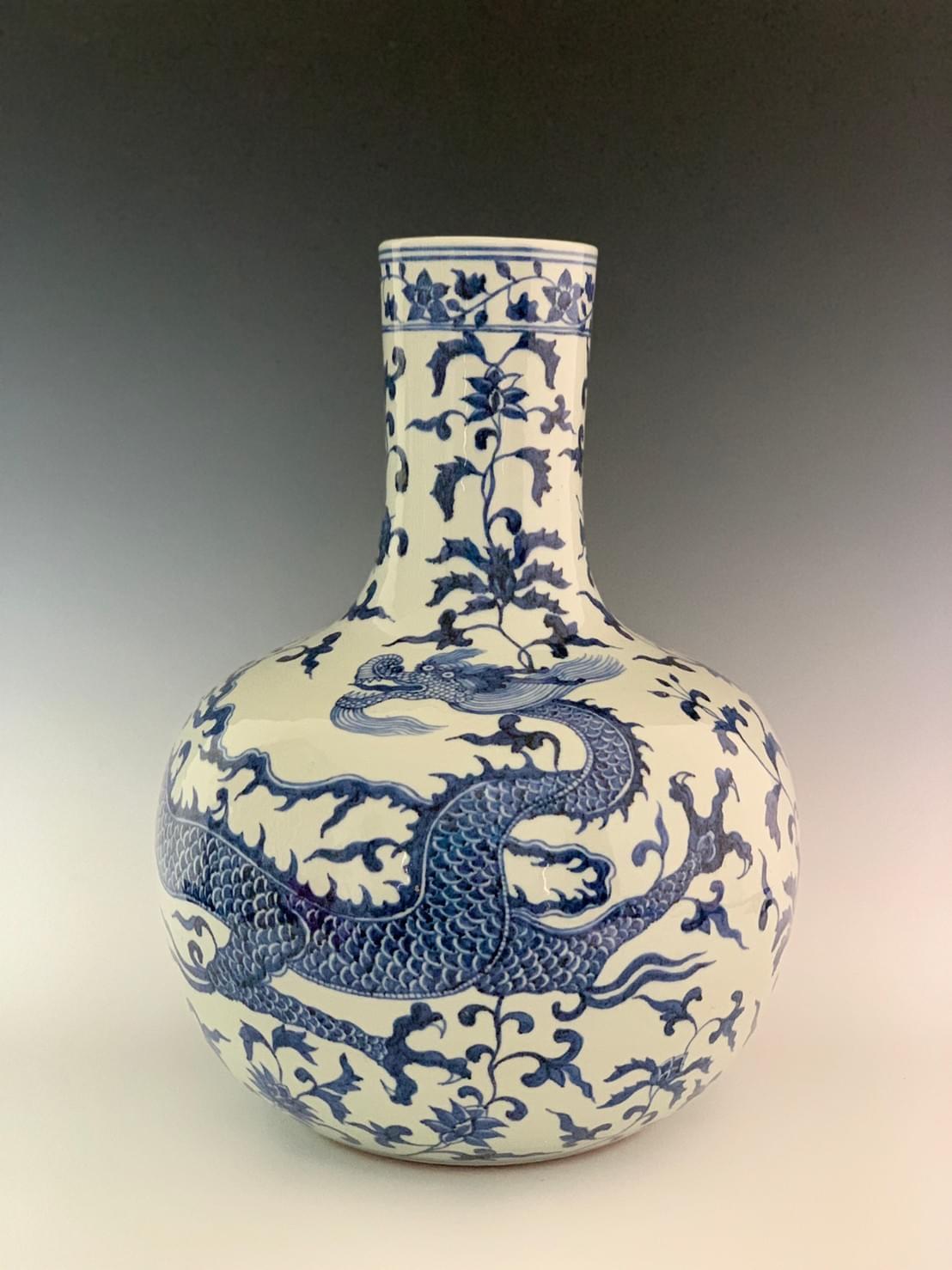 明朝宣德 ▎青花蟠龍纏枝天球瓶